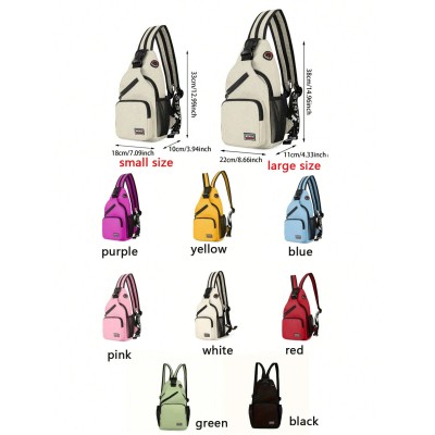 Multi Pockets Sling Backpack, Casual Nylon Crossbody Bag, Travel Hiking Daypack With Zipper Strap Back To School
