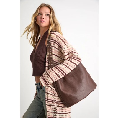 Ezell Dark Brown Vegan Leather Studded Tote Bag