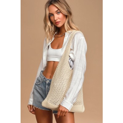Vacay Bound Cream Crochet Tote Bag