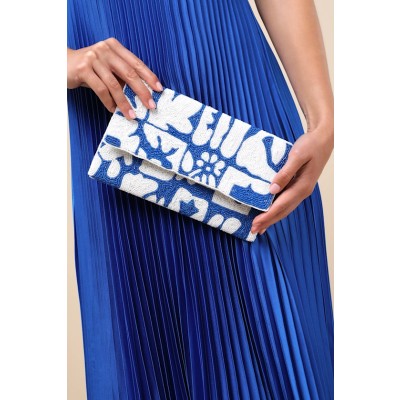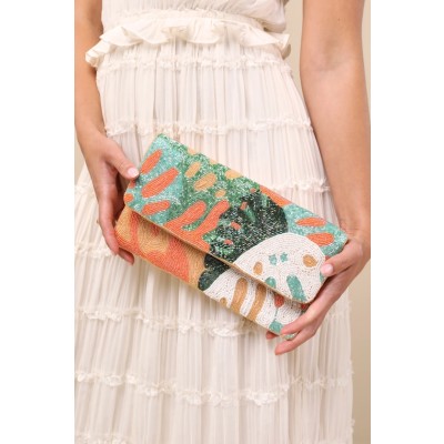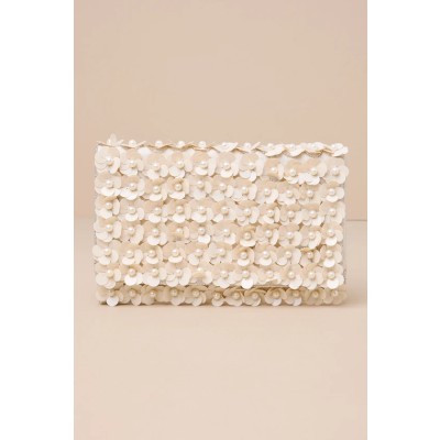 Sparking Perfection Ivory Floral Sequin Pearl Clutch