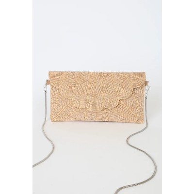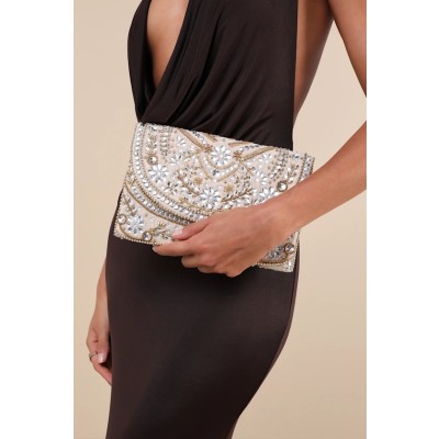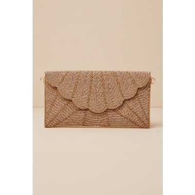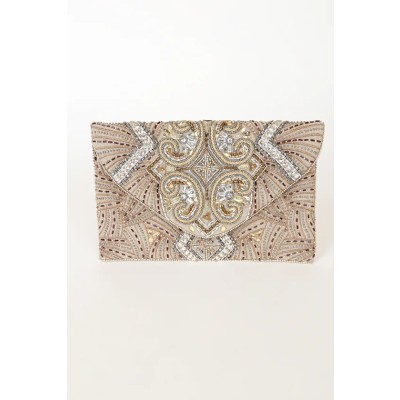 Convincing Shine Taupe and Gold Beaded Rhinestone Clutch