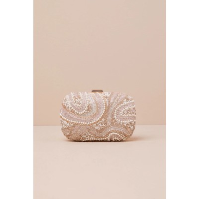 Upscale Idea Beige and Pink Beaded Pearl Hard-Sided Clutch