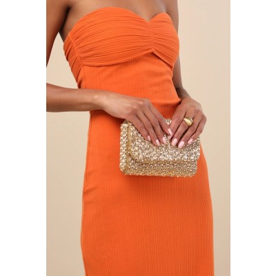 Stunning Glow Gold Beaded Rectangular Mini Clutch