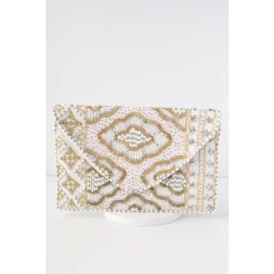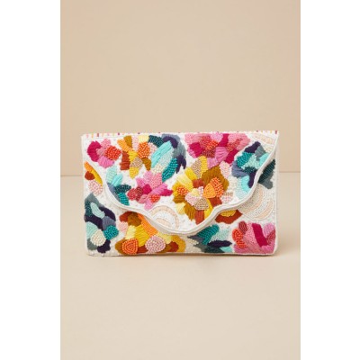 Vibrant Charm White Multi Beaded Embroidered Clutch