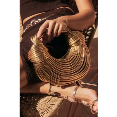 Deeply Luxe Gold Metallic Knotted Cord Crescent Handbag