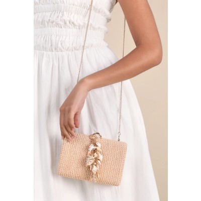 Vitalia Beige Raffia Shell Charm Box Clutch
