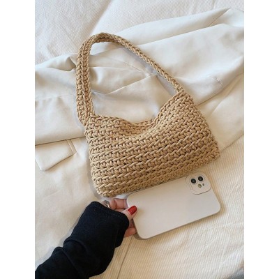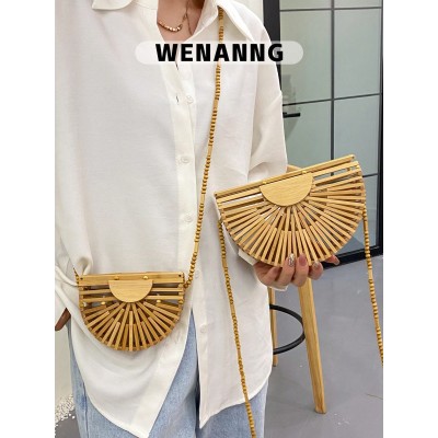 1 Pc S/L Fashion Half Moon Wooden Shoulder Crossbody Bags For Women Bamboo Woven Summer Beach Straw Bag Rattan Small Phone Purse Mini Sac Perfect For Women/Girl For Vacation /Travel