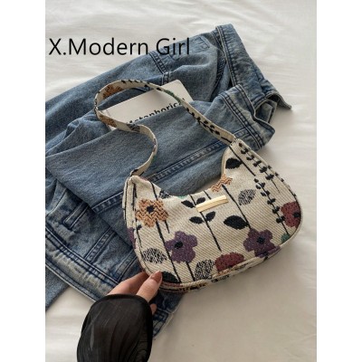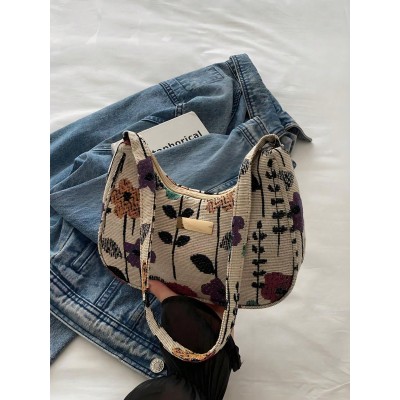 Fashionable Versatile Solid Color New Floral Print Shoulder Bag, Casual Minimalist Baguette Small Square Bag For Women