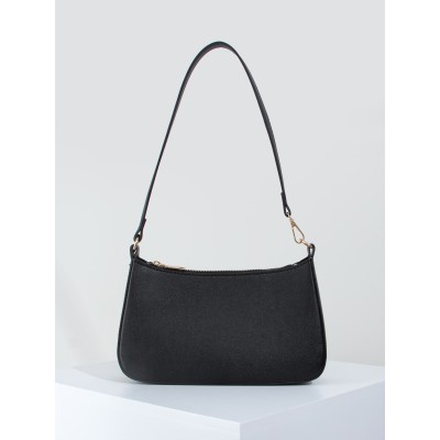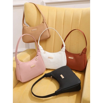 Lychee Grain PU Women's Bag, Fashion Shoulder Bag For Women, Solid Color Synthetic Leather Handbag With Zipper Closure And Wristlet, Polyester Lined, Versatile Underarm Dumpling Purse - Available In White, Black, Pink,Khaki,Brown