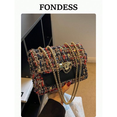 1pc Black & Colorful Plaid Tweed Small Square Bag, 2024 Autumn/Winter Fashion Chain Strap Shoulder Crossbody Bag With Lock Clasp For Women, Chic Vibe Suitable For Daily, Date, Gift, Party