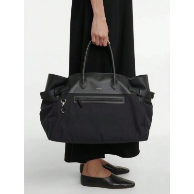 Oversized Black Tote Bag For Women - Durable Nylon & Leather Shoulder Bag With Zipper Pocket, Spacious Work Commute & Shopping Tote