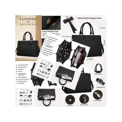 Keychain RAINSMORE Laptop Bag For Women 15.6 Inch PU Tote Bag Business Office Work Bag Waterproof Briefcase Computer Tote Lightweight Handbag Shoulder Black